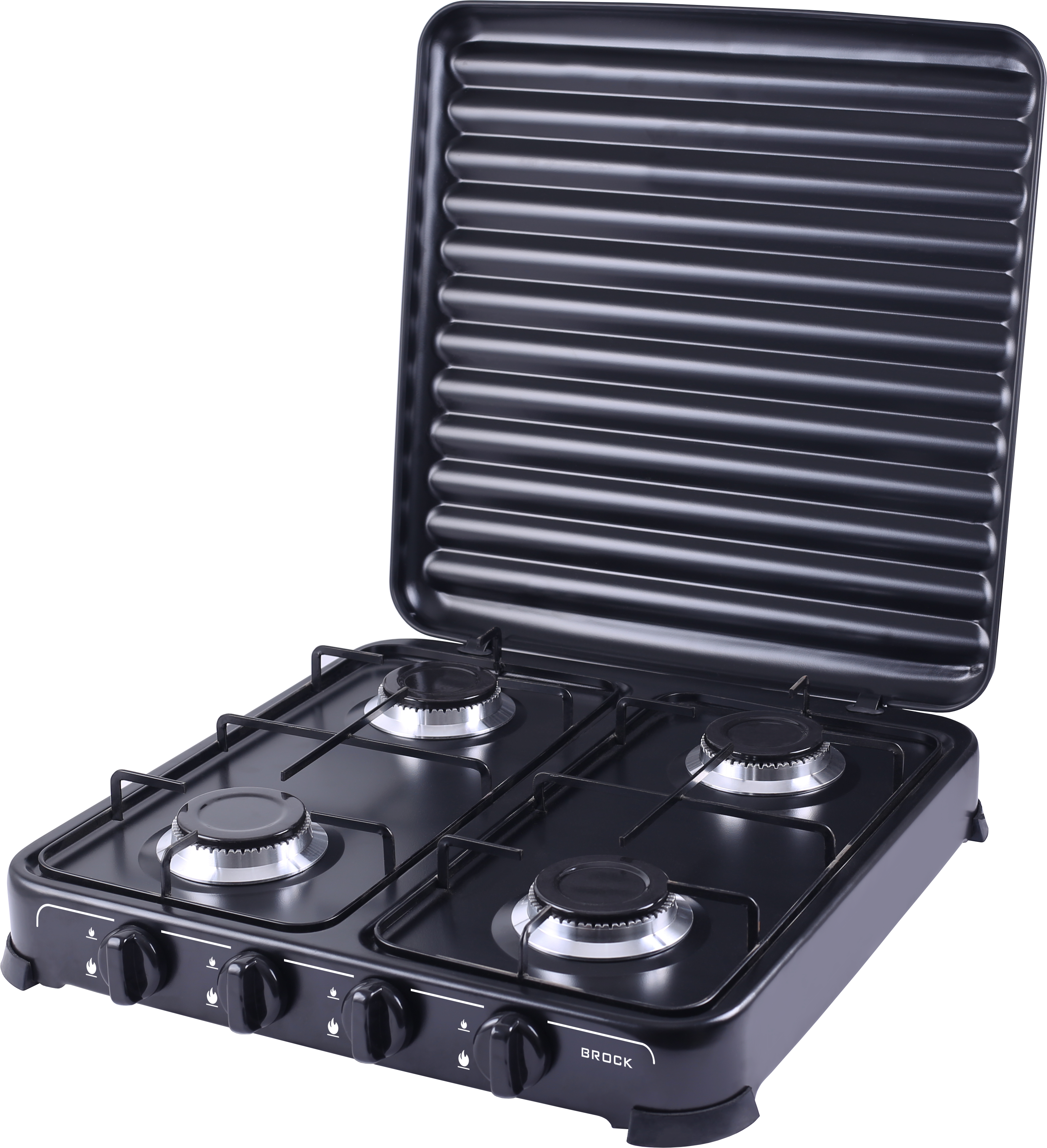 Brock GS2004BK, 4zónový, LPG (G30, G31), Litinové hořáky, Kovové pouzdro, Černá, Přenosný plynový vařič