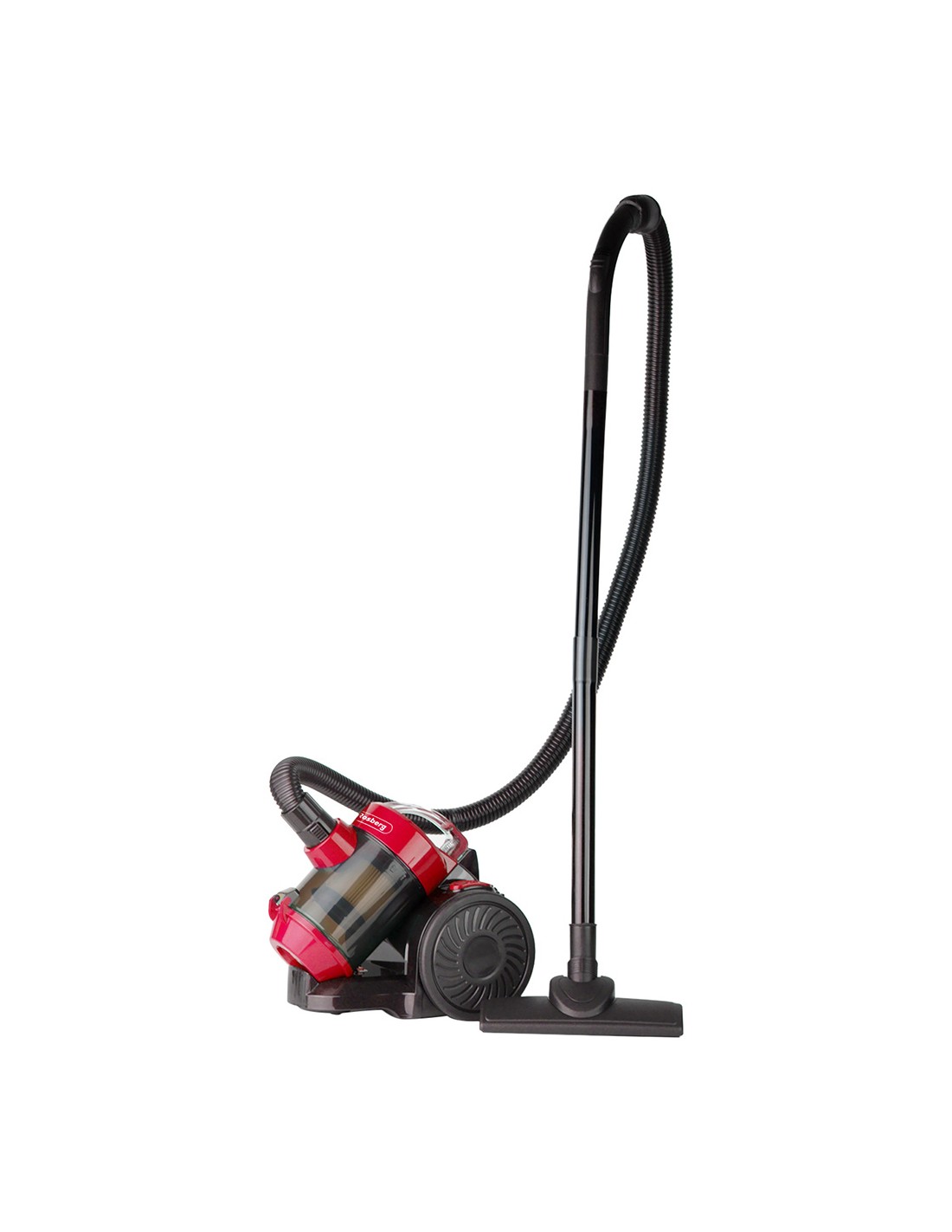 Šňůrové provedení zajišťuje nepřetržitý výkon bez přerušení. Kompaktní design v červené barvě je nejen estetický, ale také snadno přenosný. Díky bezsáčkovému systému není potřeba vyměňovat sáčky na prach, což z něj činí nákladově efektivní a ekologické řešení.
